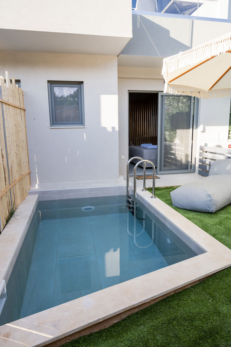 Made for ultimate comfort. Our exclusive suites are equipped with anything you might need plus spacious balconies to cherish the view. Enjoy total calmness in your very own backyard with a private pool and the most relaxing pouf!